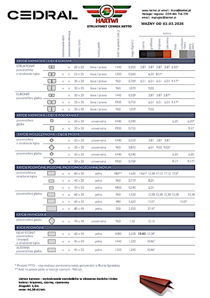 Cennik – Gamrat systemy rynnowe – wersja skrócona
